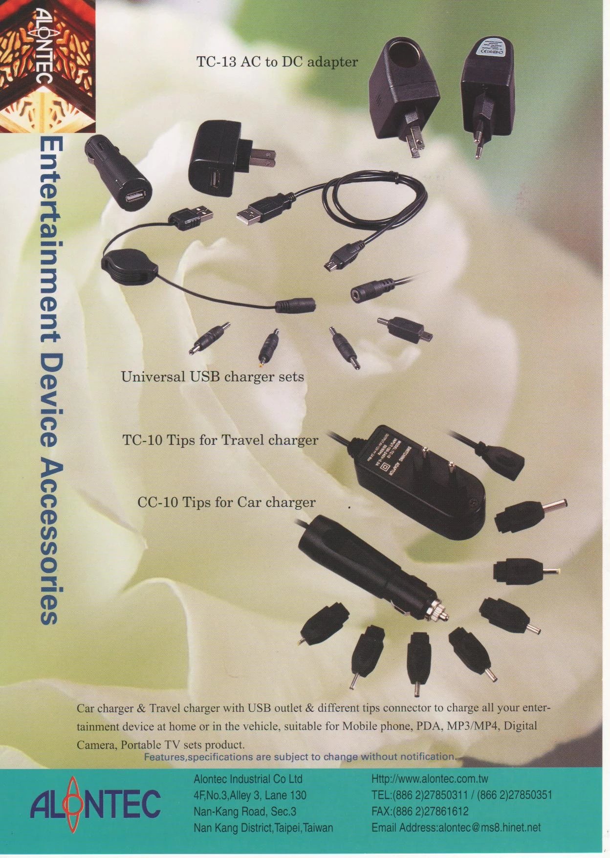 UNIVERSAL CAR & TRAVEL CHARGERS OF MOBILE PHONES AND PDAs FOR DIFFERENT BRANDS
